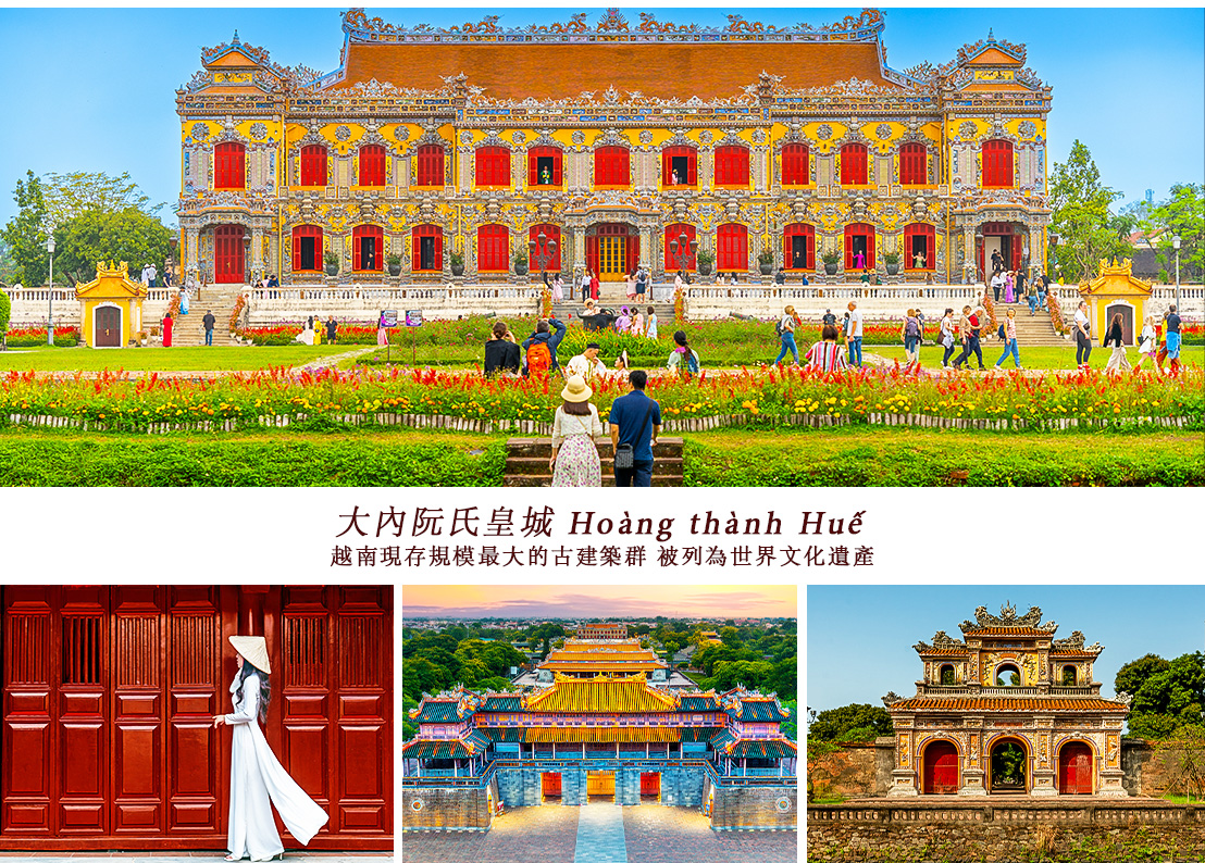 越南最後一個封建王朝—阮朝的皇宮,至今當地仍保留皇城、寺廟和皇陵。建築構造與北京紫禁城相似,又有「小紫禁城」稱號,於1993年被列為世界文化遺產。