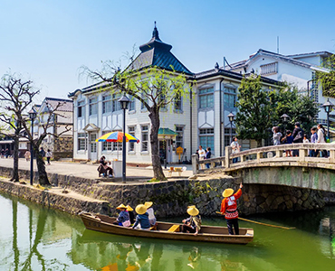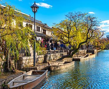 【充滿歷史與藝術氣息的美麗白牆街道】倉敷美觀地區,您可以欣賞到白牆倉庫、海苔牆、成排的柳樹等古樸的風景。由傳統建築組成的街道,以及倉敷復古現代的景色,至今仍吸引著來自世界各地的人們。這裡遍佈著販售「倉敷帆布」和「倉敷丹寧布」等倉敷品牌的時尚商店,以及由傳統聯排別墅改造而成的咖啡館,一年四季都熙熙攘攘,遊客絡繹不絕。此外,這裡還有「大原美術館」和「常春藤廣場」等眾多文化設施,即使花一整天時間遊覽也不會感到無聊。