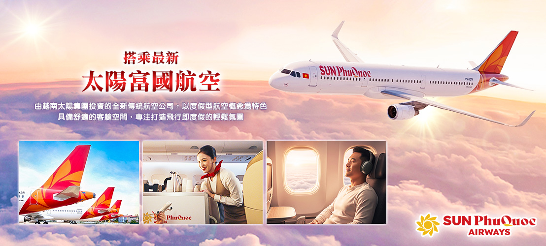 全新太陽富國航空(9G)直飛至富國島,來回直飛省去轉機所花費的時間。